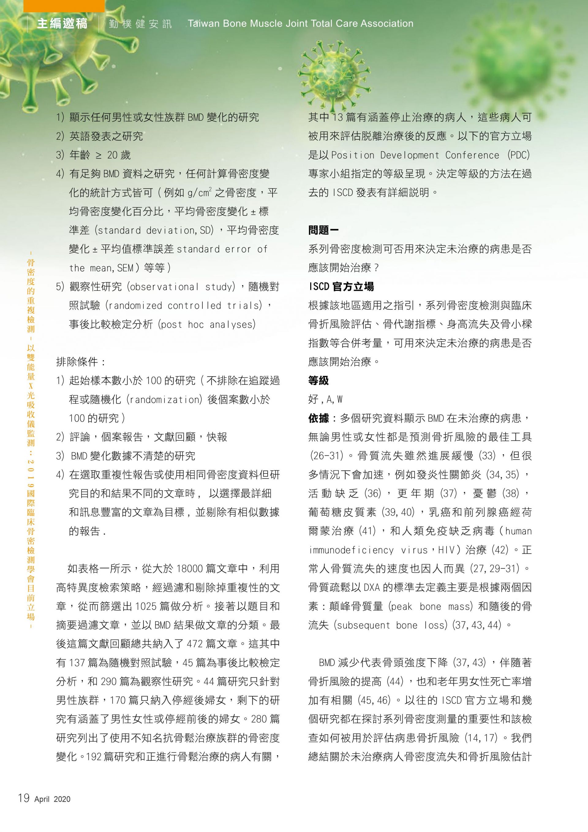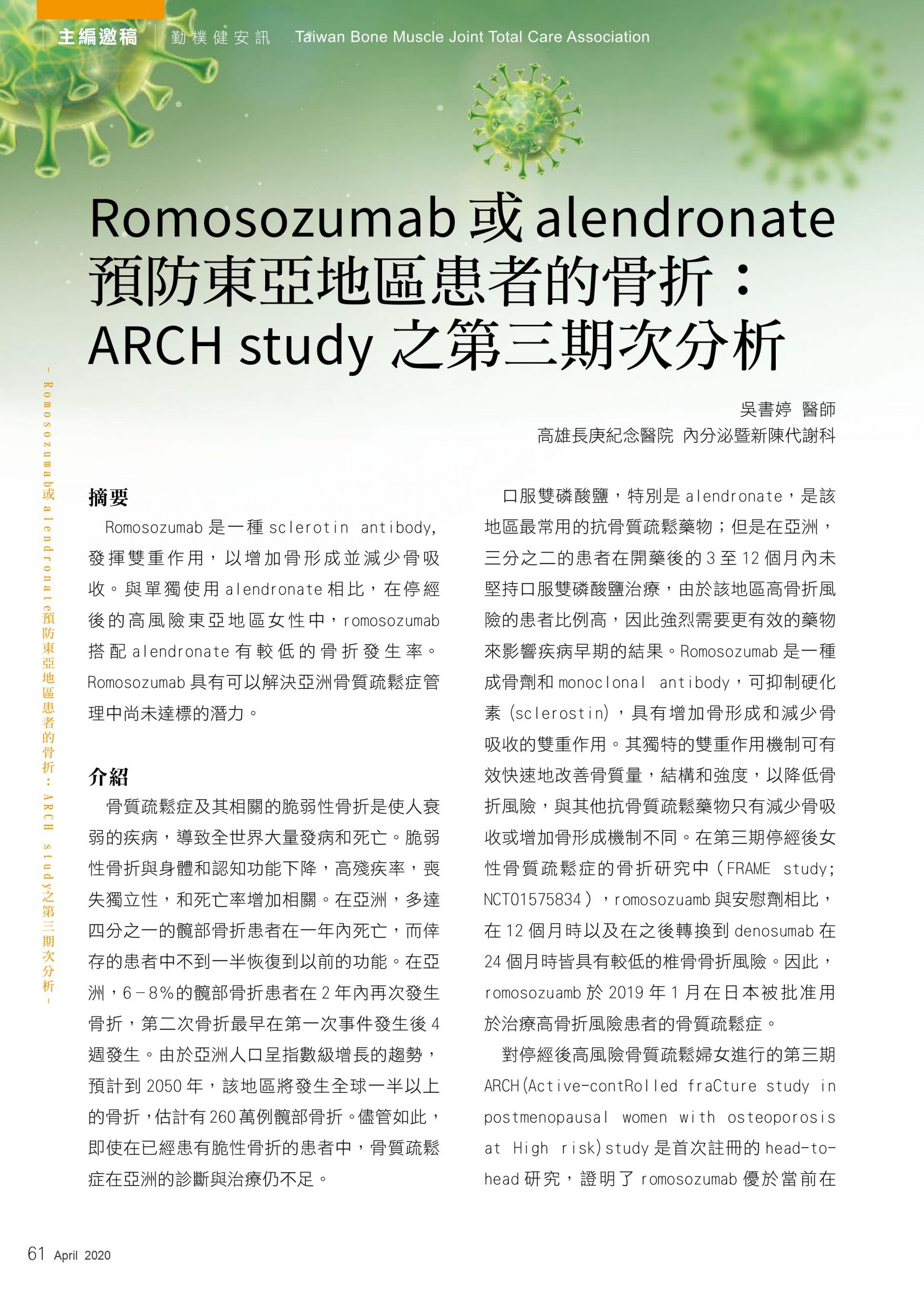 台灣骨鬆肌少關節防治學TBMJ會以健康促進預防為優先,宣導民眾建立正確防治識能,加強預防跌倒的措施,減少骨折發生。 台灣骨鬆肌少關節防治學會TBMJ協助臨床醫師為每位患者選擇最有效的初始治療方案,並在適當時間改變治療方案。