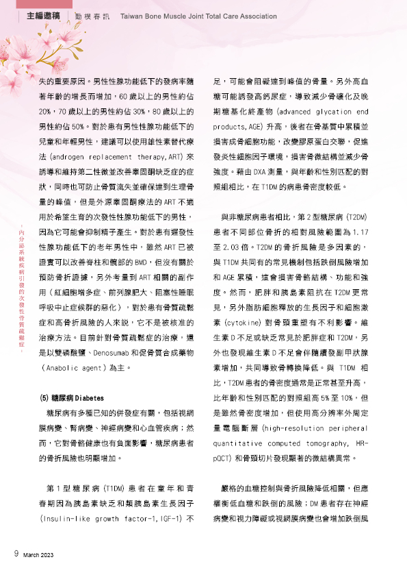 台灣骨鬆肌少關節防治學TBMJ會以健康促進預防為優先,宣導民眾建立正確防治識能,加強預防跌倒的措施,減少骨折發生。 台灣骨鬆肌少關節防治學會TBMJ協助臨床醫師為每位患者選擇最有效的初始治療方案,並在適當時間改變治療方案。