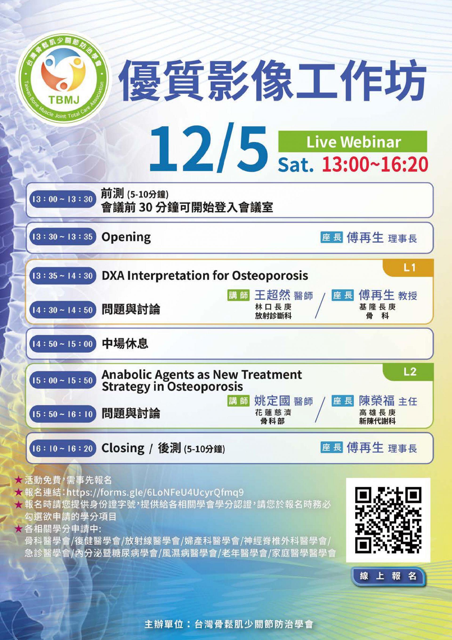台灣骨鬆肌少關節防治學TBMJ會以健康促進預防為優先,宣導民眾建立正確防治識能,加強預防跌倒的措施,減少骨折發生。 台灣骨鬆肌少關節防治學會TBMJ協助臨床醫師為每位患者選擇最有效的初始治療方案,並在適當時間改變治療方案。